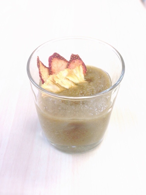デーツが入っているので色は良くないですが、ゴーヤが入っているとは全く感じないおいしいスムージーです。